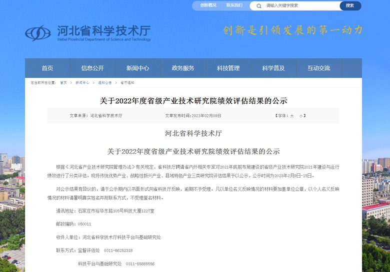 202329日,河北省科技廳發(fā)布了關(guān)于2022年度省級(jí)產(chǎn)業(yè)技術(shù)研究院績效評(píng)估結(jié)果的公示。經(jīng)評(píng)估,我公司建設(shè)運(yùn)行的“河北省綠色建筑產(chǎn)業(yè)技術(shù)研究院”榮獲戰(zhàn)略性新興產(chǎn)業(yè)類研究院優(yōu)秀等次。