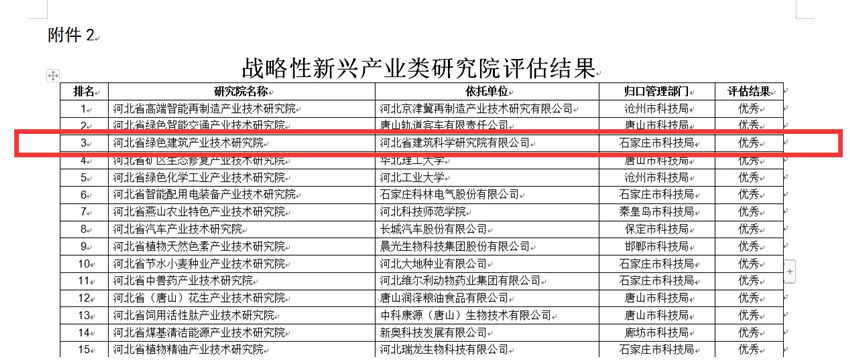 我公司建設(shè)運(yùn)行的“河北省綠色建筑產(chǎn)業(yè)技術(shù)研究院”榮獲省級(jí)產(chǎn)業(yè)技術(shù)研究院績效評(píng)估優(yōu)秀等次