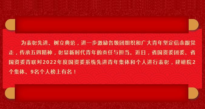 【建研青年】喜報!建研院2個集體、9名個人榮獲省國資委表彰