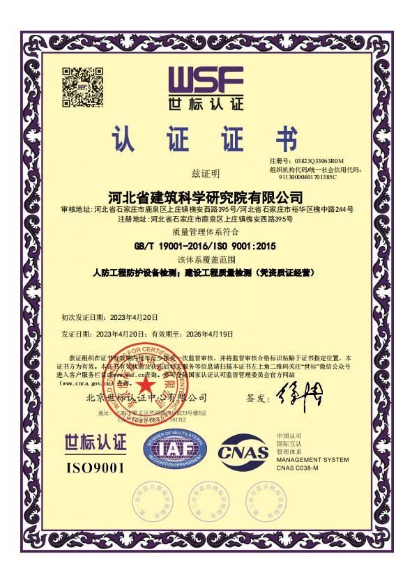 河北省建筑科學(xué)研究院有限公司認證證書2