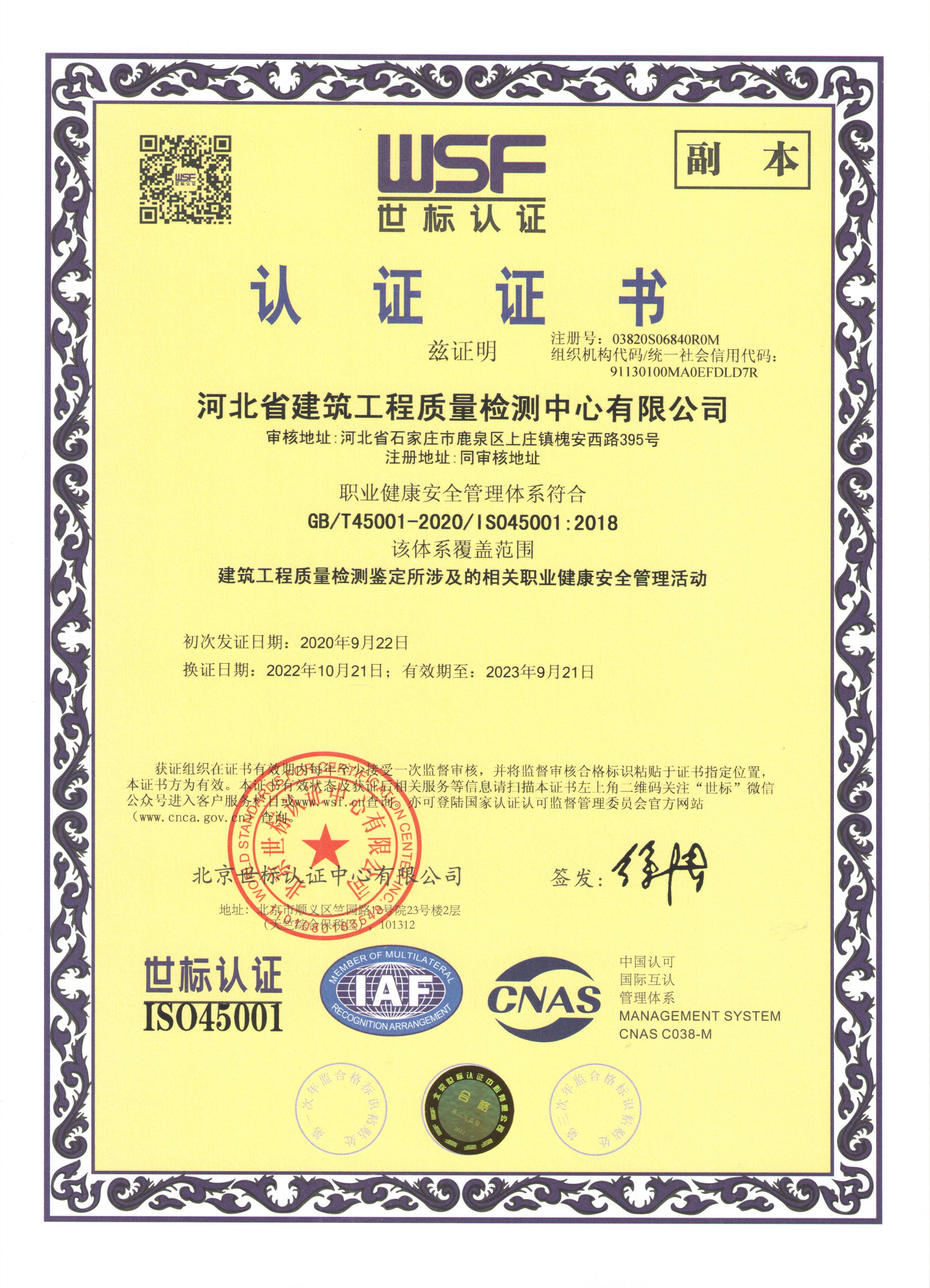 河北省建筑工程質(zhì)量檢測中心認證證書3
